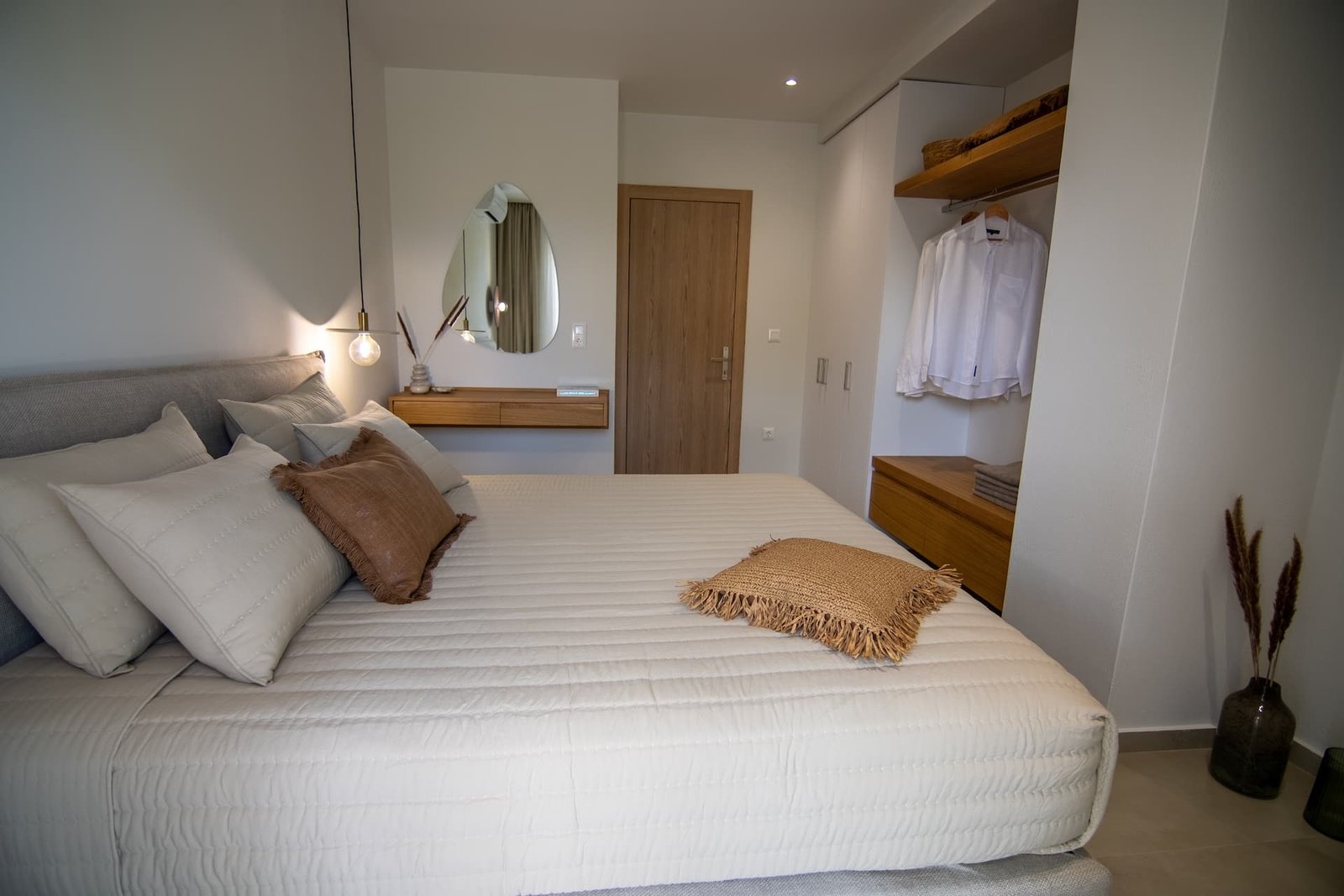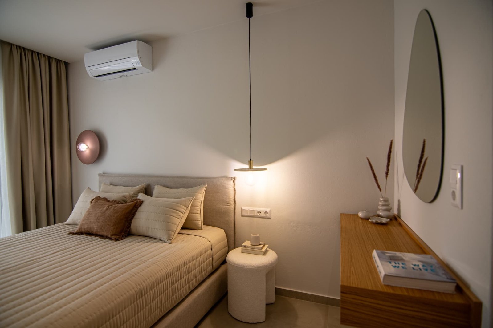 }At AIGÍS Apartment Skiathos, comfort meets elegance to create the perfect setting for a relaxing island getaway. Thoughtfully designed interiors, modern aesthetics, and a peaceful atmosphere offer an authentic hospitality experience. Each detail embraces a down-to-earth colour palette, offering the perfect backdrop for your dream vacation, uniquely tailored to you.