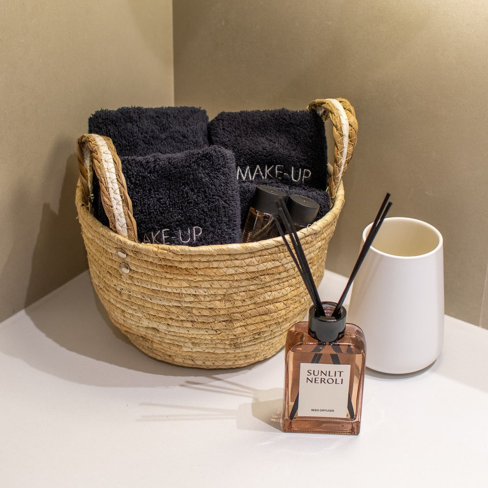 At Aigis, every corner is thoughtfully curated to feel personal and familiar with soft textures, warm details, and practical comforts that mirror the ease of your own home to feel completely at ease. As a warm gesture of hospitality, a welcome box with local specialty items awaits you upon arrival.